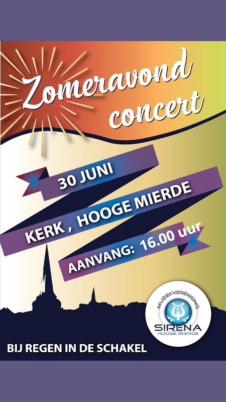 We hopen dat je erbij kunt zijn. Het zomeravondconcert is een geweldige gelegenheid om de lokale muziektalenten te ondersteunen en te genieten van een sfeervolle avond.