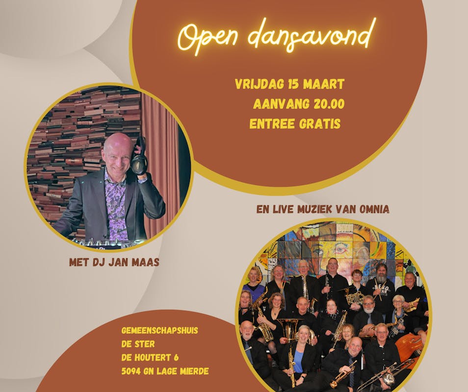 15 maart dansavond in De Ster Lage Mierde met DJ Jan Maas en live muziek van Omnia Lage Mierde.