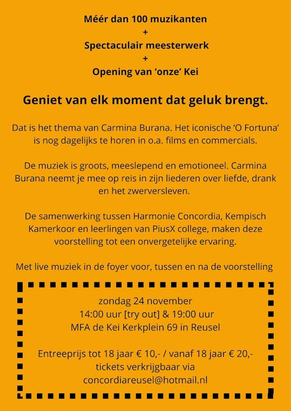 Geniet van elk moment dat geluk brengt.Dat is het thema van Carmina Burana. Het iconische ‘O Fortuna’ is nog dagelijks te horen in o.a. films en commercials.
