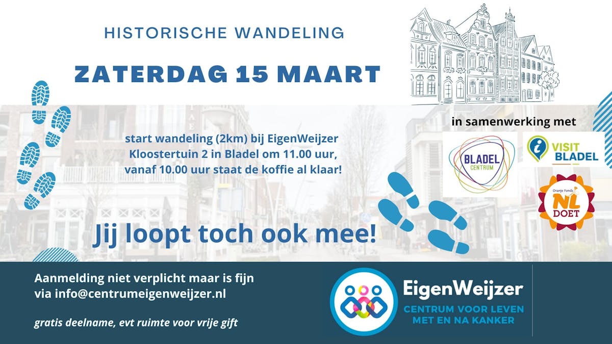 Loop je mee? EigenWeijzer centrum voor leven met en na kanker organiseert in samenwerking met visit Bladel en Centrum Bladel en NL.doet een historische wandeling op zaterdag 15 maart door centrum Bladel.