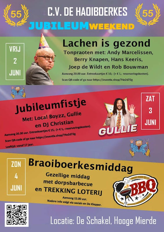 We gaan een superfeest houden met de knotsgekke band Local Boyzz, maar ook Gullie komt langs voor een optreden en tussendoor hebben we natuurlijk onze eigen feest DJ Christian.