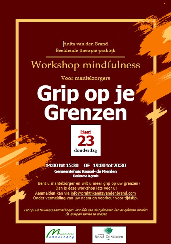 Beeldende therapie praktijk Anita van den Brand verzorgt op 23 maart samen met Gemeente Reusel- De Mierden deze midfulness workshop. Meld je snel aan en ervaar wat deze workshop jou kan brengen.