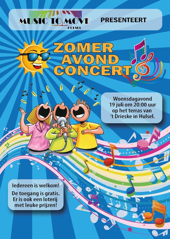 Zomeravondconcert om 20.00 uur op het terras bij 't Drieske in Hulsel.