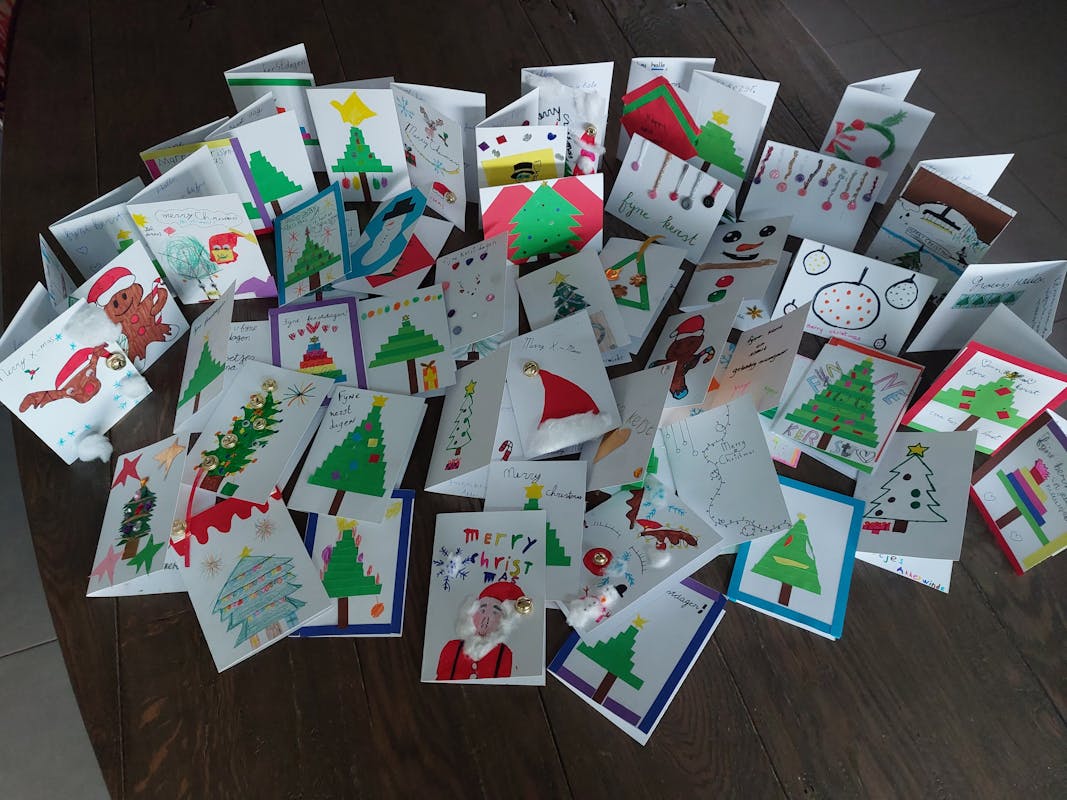 Alweer voor het derde jaar maken kinderen uit Hooge Mierde met veel enthousiasme tientallen kleurrijke kerstkaarten.