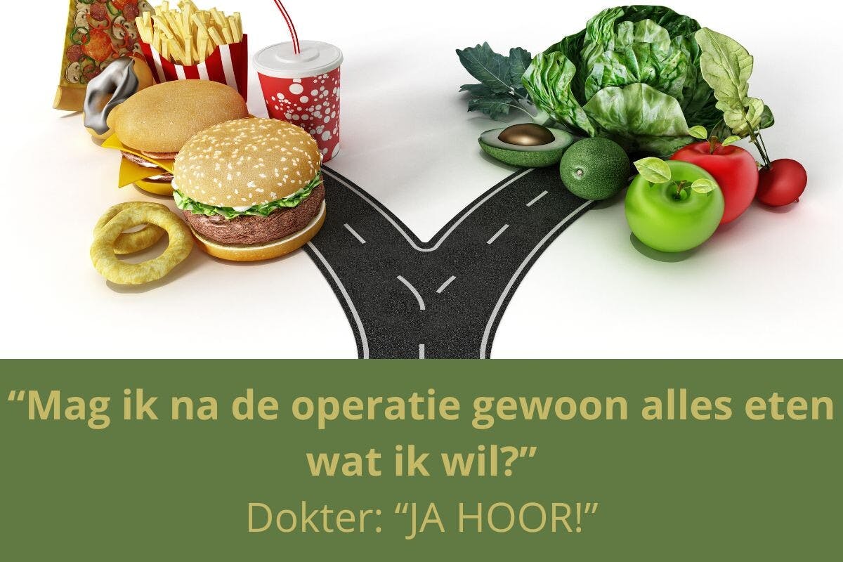 Na haar behandelingen van haar ernstige ziekte vroeg ze de dokter “Mag ik gewoon alles eten wat ik wil?” “ Ja hoor!” was het antwoord.