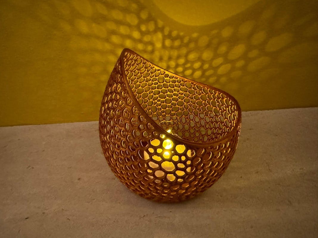 We verkopen theelichthouders die we zelf maken met een 3D-printer. Super leuk en uniek!