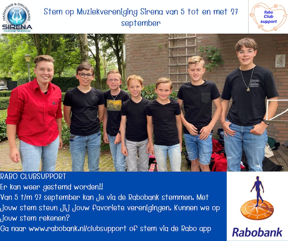 Van 5 t/m 27 september kan je via de Rabobank stemmen. Met jouw stem steun jij jouw favoriete verenigingen. Kan muziekvereniging Sirena op jouw stem rekenen?