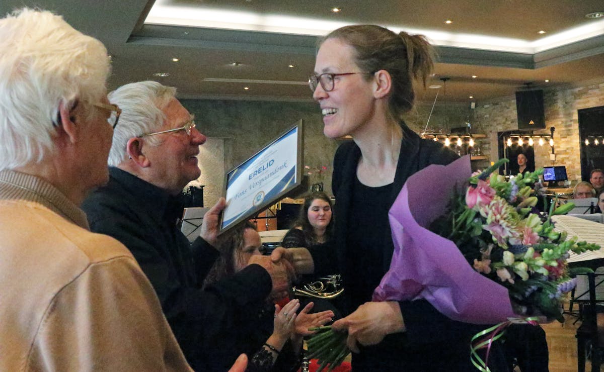Na het uitreiken van de bijbehorende oorkonde was er tijd voor een gezellig samenzijn van muzikanten en familie onder het genot van een drankje, en werd het kersverse erelid uiteraard van harte gefeliciteerd door de aanwezigen. Het bleef nog lang gezellig aan de tafel der wijzen.