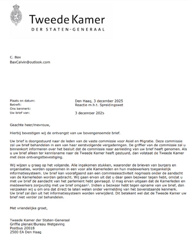Via de foto's Even doorklikken vind je diverse mailwisselingen terug net zoals de brief van de tweedekamer.