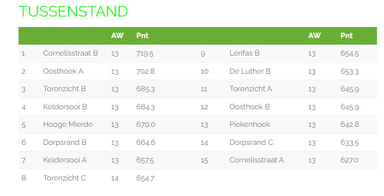 Na 13 wedstrijden staat CB riant aan de leiding maar er moet nog één wedstrijdronde gespeeld worden....
