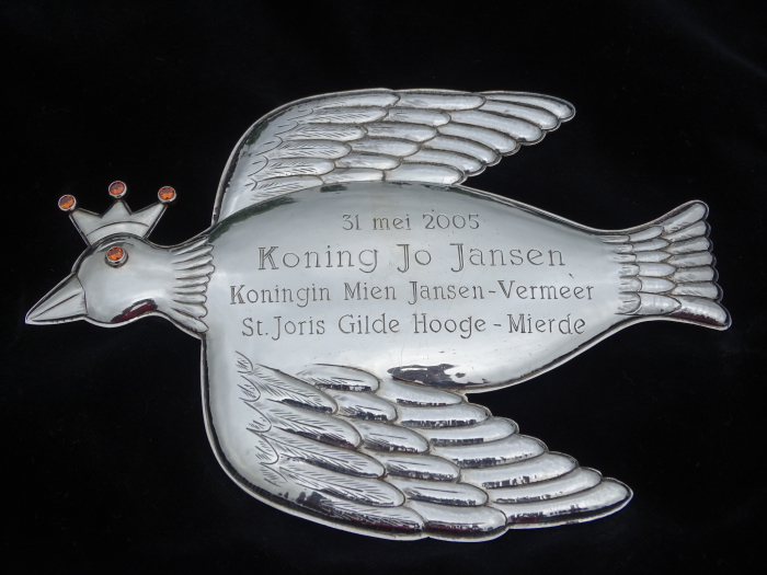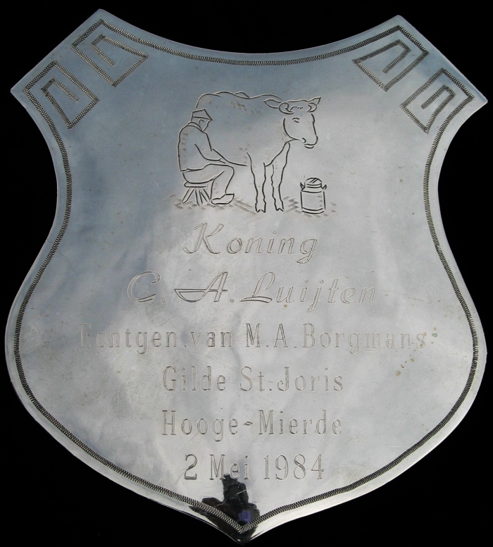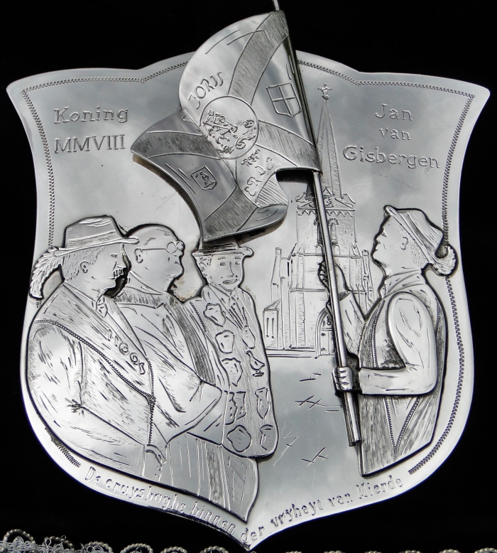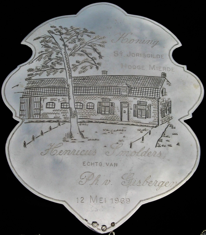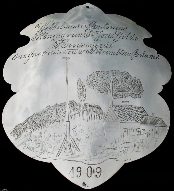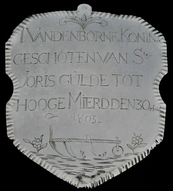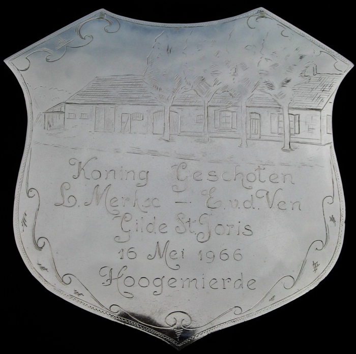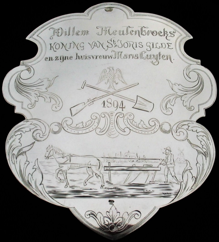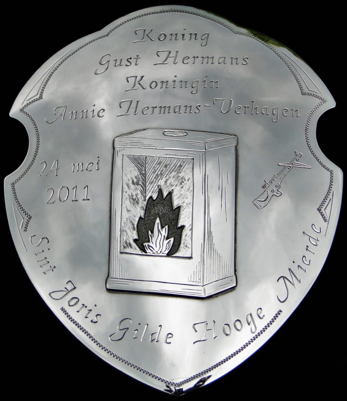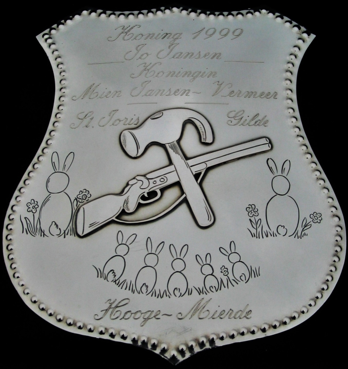 Iemand die koning schiet wordt geacht aan het gilde een zilveren schild te schenken. Wij kennen een traditie met drie verschillende soorten uitbeeldingen op zo'n koningsschild: