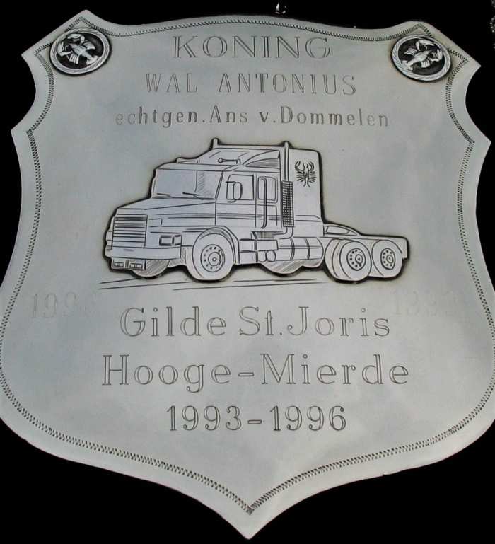 Mien is de eerste vrouwelijke koning (dat is ook haar officiële titel, niet 'koningin'). Zij beeldt met haar schild, dat uit meerdere lagen zilver bestaat, haar grote hobby uit: haar bloementuin. De letters zijn de beginletters van de namen van haar kinderen: Sjef, Roy, Eric, Josien en Corien.