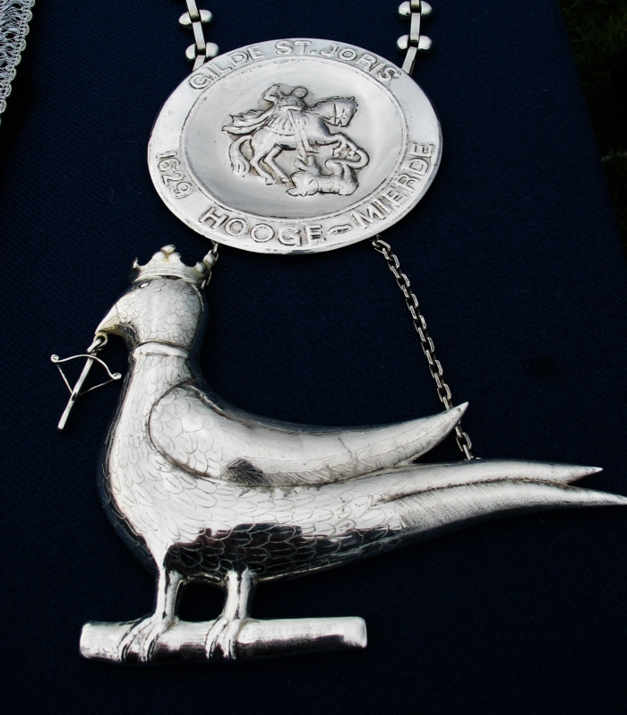 Willeke laat een gildentafereel uitbeelden, een schutsboom met een koningsvogel erop.
