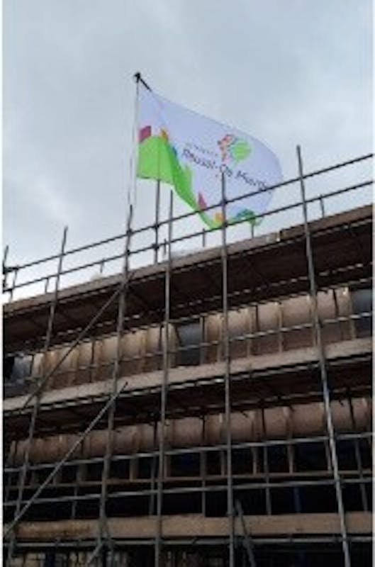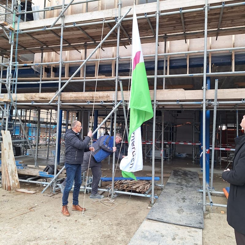 Op 23 februari is het hoogste punt van de nieuwbouw MFA De Kei met een officieel tintje gevierd. Na een toespraakje en het hijsen van de vlag door wethouder Peter van de Noort kon iedereen een bezoekje brengen aan deze nieuwe multifunctionele accommodatie in aanbouw. Ook op 24 februari waren alle inwoners van Reusel-De Mierden welkom om een kijkje nemen in de MFA in aanbouw. Ook konden de bezoekers op doeken die in de ruimten waren opgehangen afbeeldingen van het nieuwe interieur bewonderen. Er is veel aanloop geweest en er waren zeer positieve en enthousiaste reacties van de bezoekers.